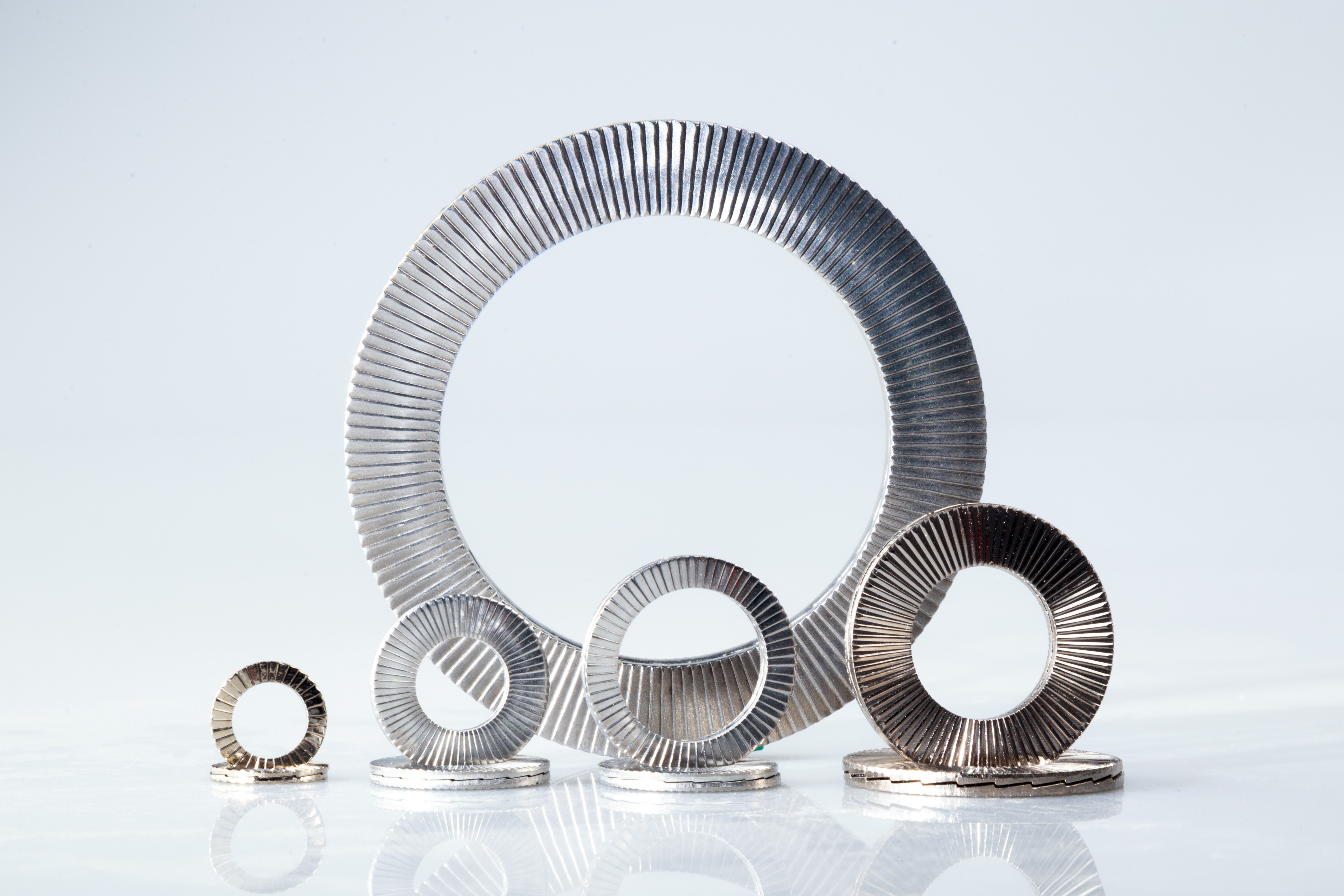 雙疊自鎖(鎖緊)墊圈DIN25201是由兩片內(nèi)齒面咬合組成,外側(cè)帶有放射狀的斜細(xì)面齒紋,內(nèi)側(cè)為大角度斜齒面。斜齒面的角度大于螺紋角度,當(dāng)連接件受到振動(dòng),螺栓連接會(huì)隨著持續(xù)振動(dòng)發(fā)生松動(dòng)趨勢(shì),僅允許墊圈內(nèi)側(cè)的斜齒面會(huì)產(chǎn)生相對(duì)錯(cuò)動(dòng),產(chǎn)生抬升張力,從而達(dá)到完全的防松效果。雙疊自鎖(鎖緊)墊圈利用幾何原理,安全鎖緊處于強(qiáng)烈振動(dòng)的螺栓連接。 有以下幾個(gè)優(yōu)點(diǎn): a.最高的安全性能? …